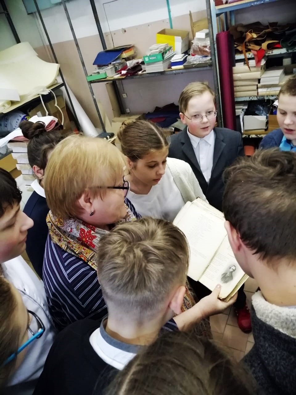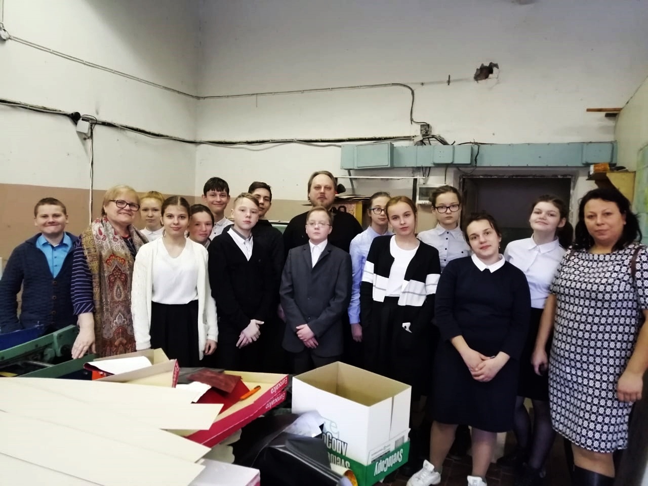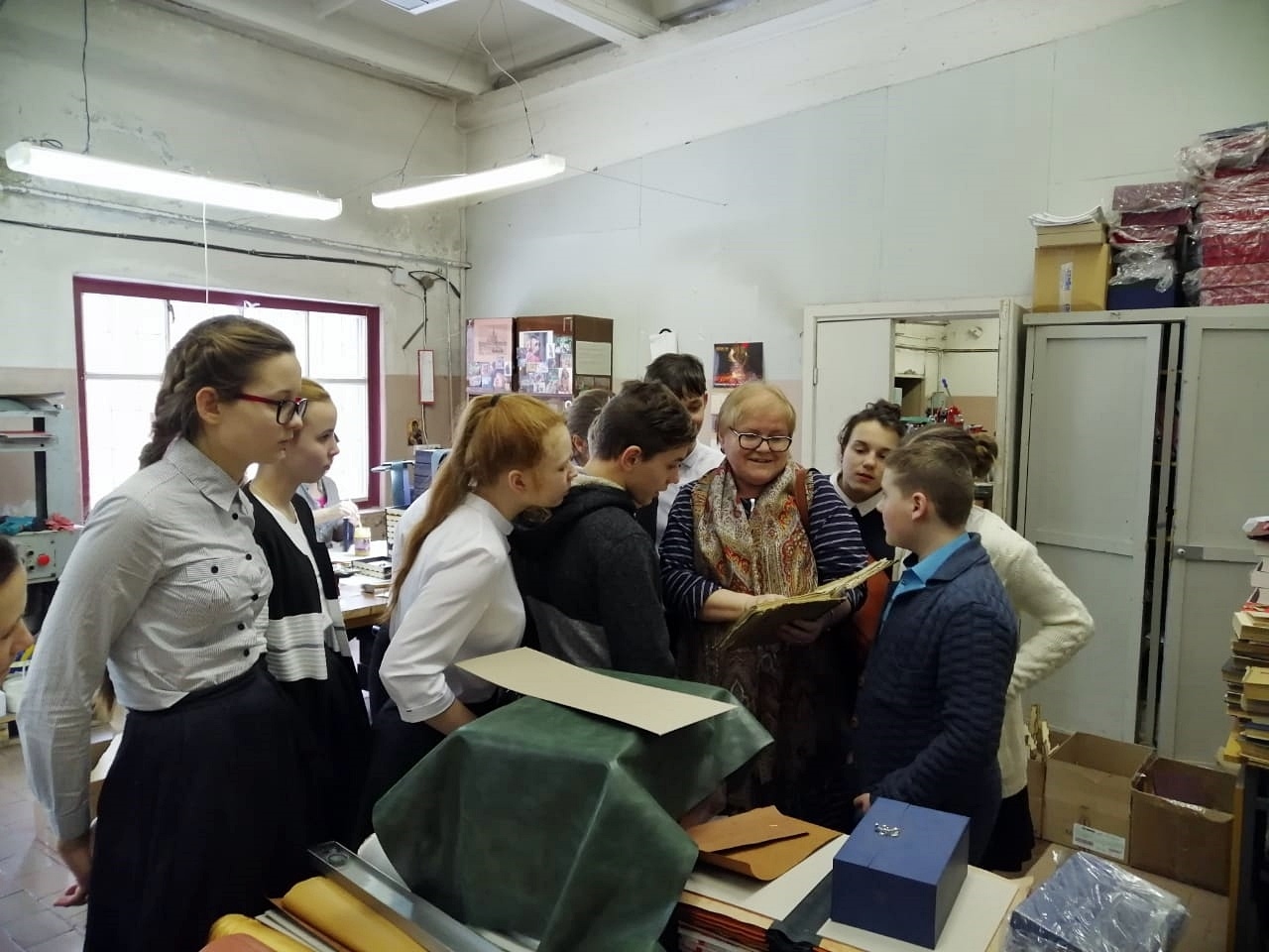 13 марта 2019 - Экскурсия в переплётной мастерской (7 класс) Подробности Просмотров: 955 13 марта ученики 7 класса побывали на экскурсии в переплётной мастерской. Ребята узнали, что такое "тиснение" и увидели как рождается книга.
